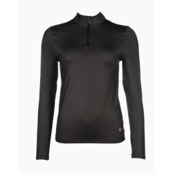 Vrouwelijke naadloze technische wedstrijdtop met zilveren details.