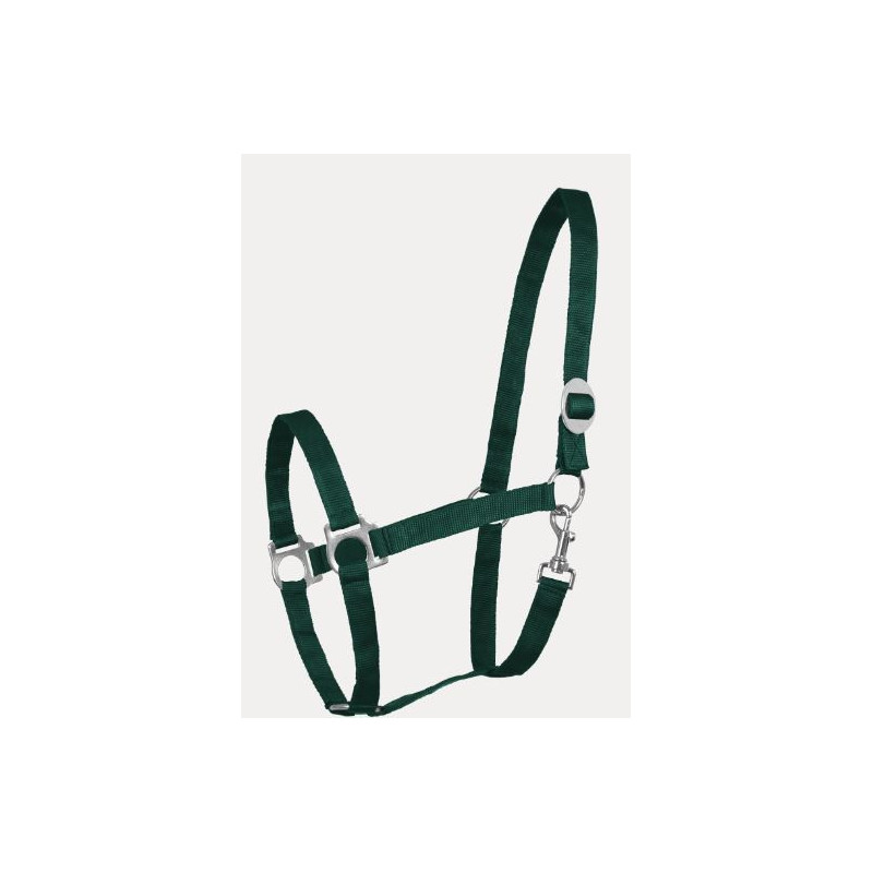 Eenvoudig, zacht halster met glanzende details en traploos verstelbaar kopstuk.