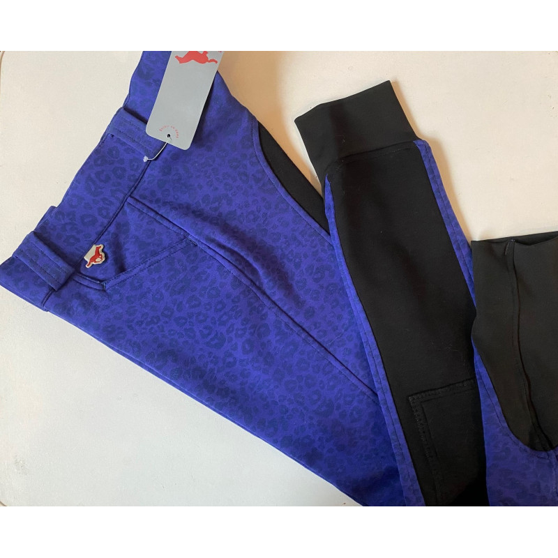 Donkerblauwe Equicomfort rijbroek met rode accenten en rode contrasterende stiksels. 2...