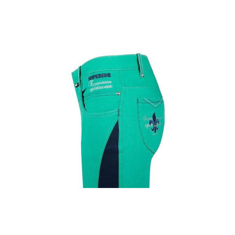 Erg mooie Imperial Riding denim rijbroek in de kleur denim navy. Voorzien van 2 steekzakken...