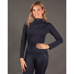 Shirt met korte mouw, opstaande kraag met ritssluiting.