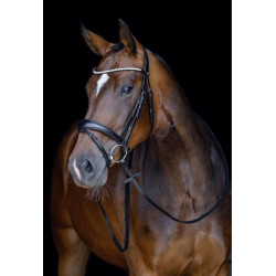Chique hoofdstel van erg soepel leer, voorzien van luxe, met strass ingelegde, frontriem. Bakstukken, keelriem, sperriem etc. mooi doorgestikt aan beide zijkanten.
