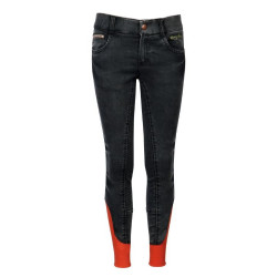 Kinderrijbroek in lounge stijl met siliconen kniestukken en elastische enkelsluitingen. De broek is vormgegeven met contrasterende gemêleerde accenten en letters op de zijkant.