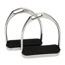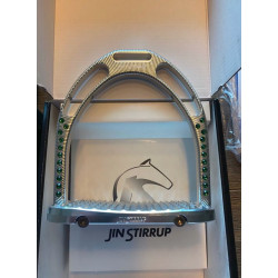 Aluminium Jin Stirrup Dressuur stijgbeugels, voorzien van ECHTE Swarovski kristallen. Deze geven de beugel een erg luxe uitstraling. De beugels zijn gemaakt van hoogwaardig zilverkleurig aluminium met een fraaie gekartelde afwerking. Het aluminium is behandeld wat een langere levensduur genereert. Voetbed afmetingen: 122mm lang x 55mm breed. Het gewicht is 508 gram per stijgbeugel. Het zwaartepunt van de beugel is iets naar beneden verplaatst om te voldoen aan de wensen van de meest veeleisende dressuurruiters.